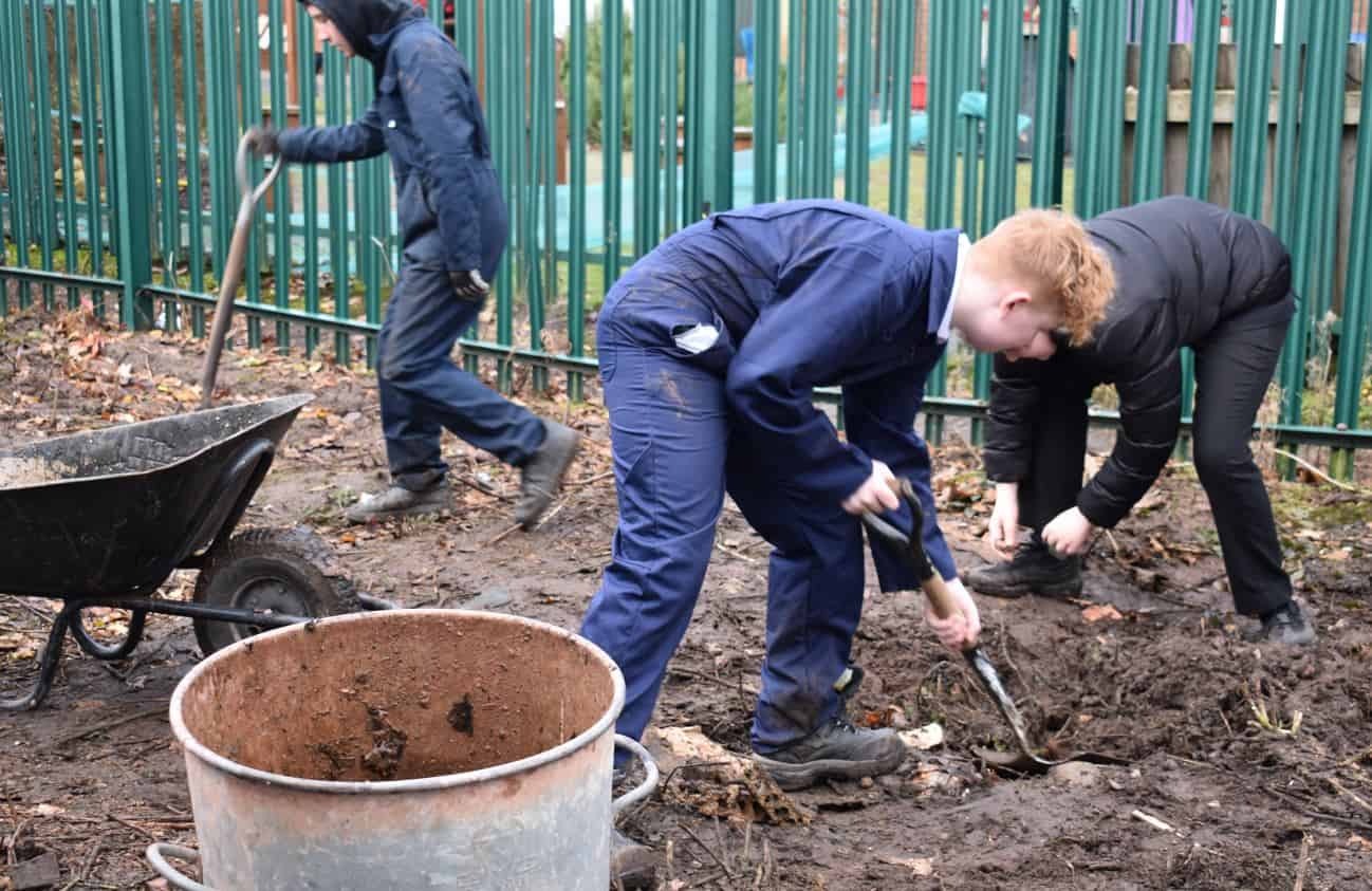 Students from The Coleshill School rolled up their sleeves to help reshape a part of the school grounds, in a…