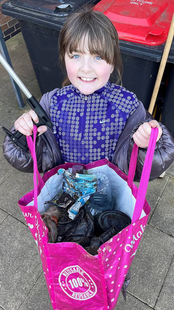 Darcie’s Dad, Scott said, ‘The inspiration for the litter pick was really after Kevin’s assembly and came from Darcie’s willingness to help others. Darcie is a lovely soul who really cares for others and is very inquisitive. She met and spoke to a lovely couple who always litter pick in our area and asked to work with them. Darcie decided to use this idea not only to improve our local area but also help such a good cause. She is also doing a table top sale on Saturday to raise more funds and has been given an award at school for her good work in the community. There are now others doing the same thing for different charities so she has inspired others to do the same…’
