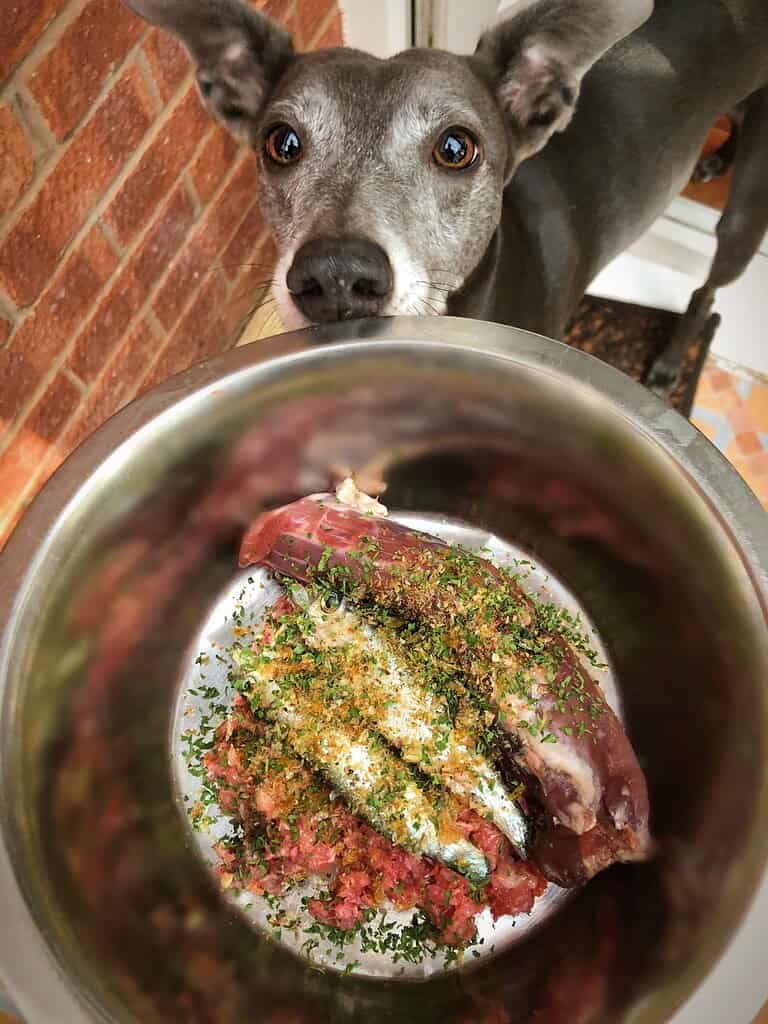 Charlie, one of the rescue dogs, had an extremely sensitive stomach and that is why we got into raw feeding and now all our dogs thrive on a natural nutritional diet.
