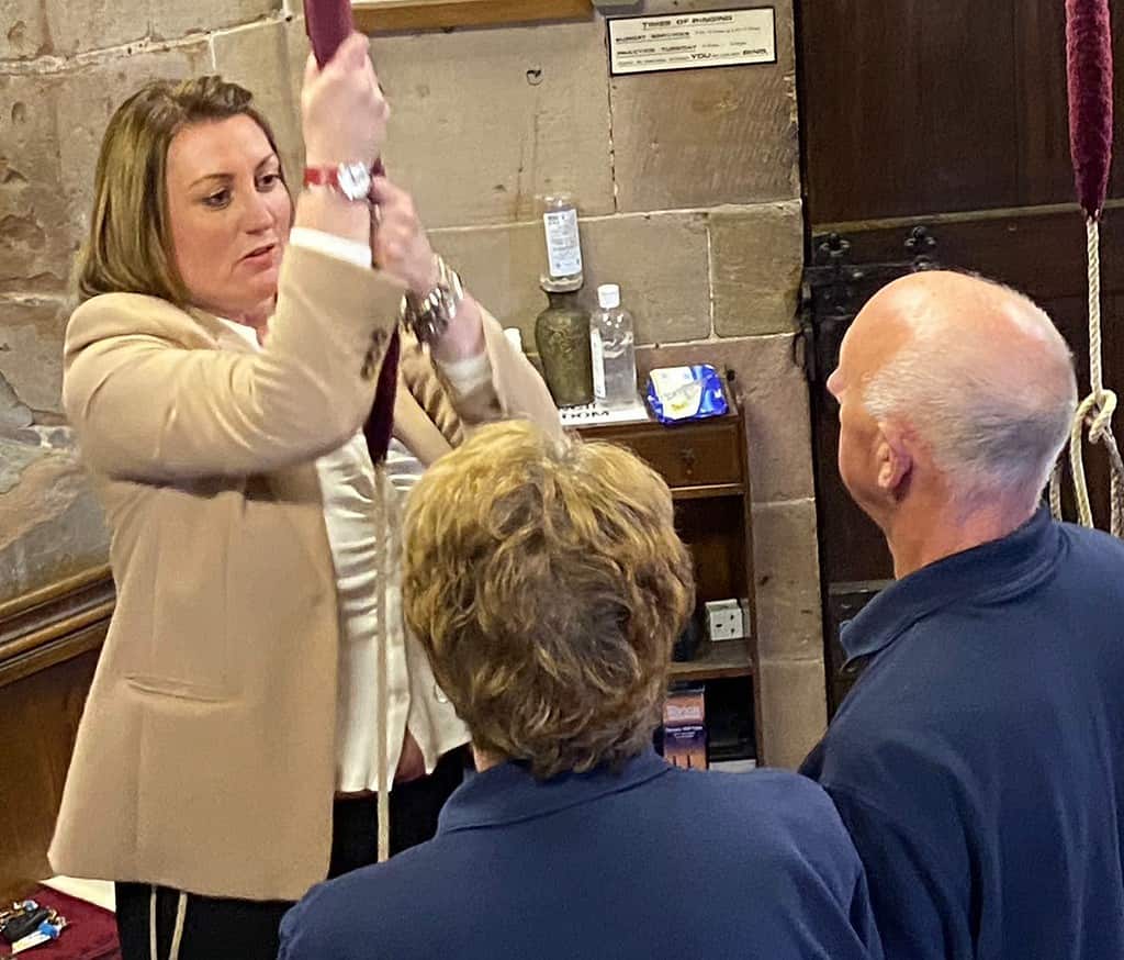 Coleshill Mayor Cllr Caroline Symonds set a new Coleshill ringing tradition when she visited the tower to present her Coronation volunteering certificates to ringers.