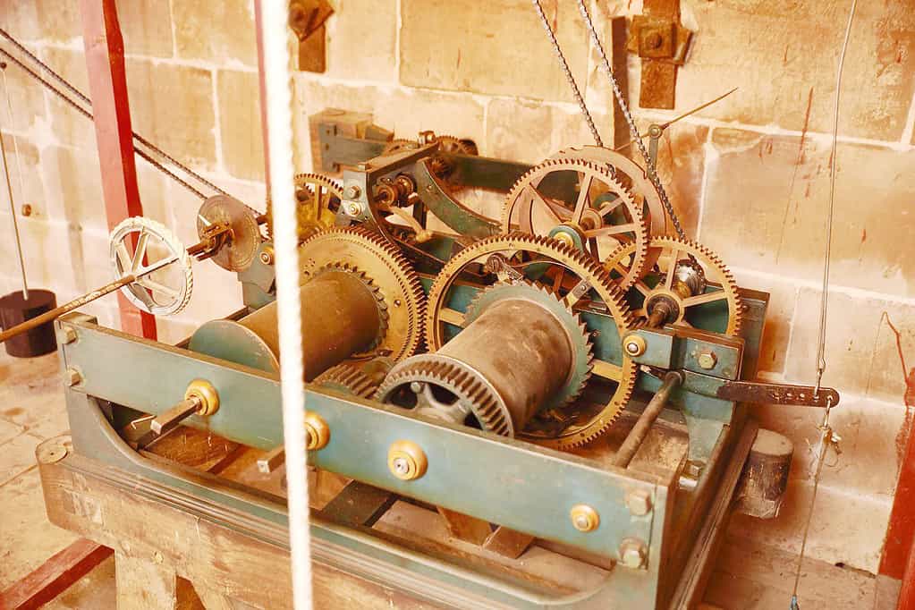 Before the auto-winding mechanism was installed the clock had to be wound by hand twice a week to keep it running.